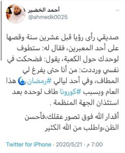 كذلك الشيخ أحمد بن إبراهيم الخضير كان بيني وبينه تواصل وتعرفت عليه بالتويتر وهو قريب جدا علي بالتحليل كذلك عنده تغريدات جميله انصح متابعته